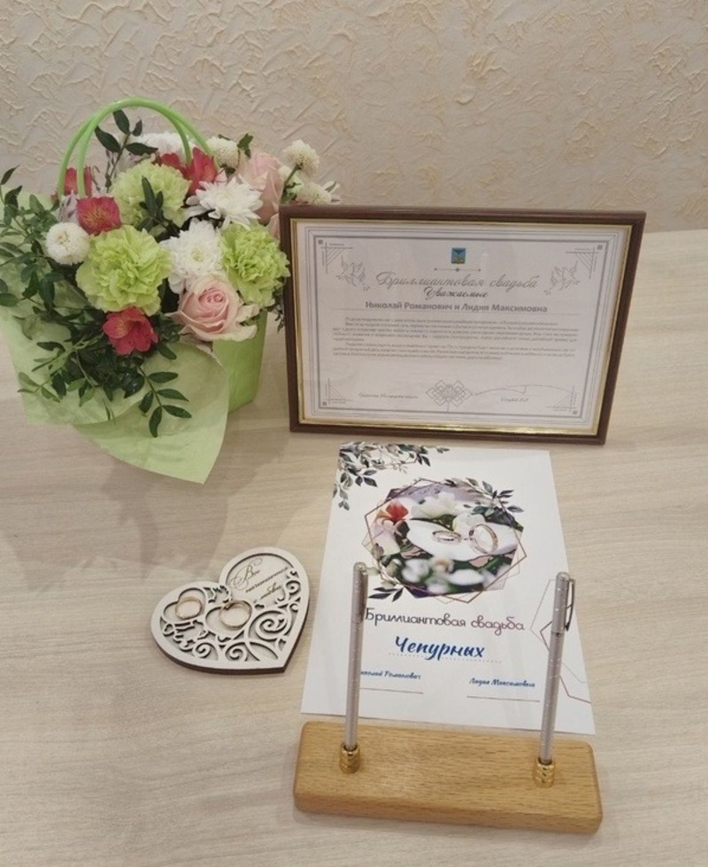 К супругам Чепурных, Николаю Романовичу и Лидии Максимовне, из села Дмитриевки мы приехали не просто так, а по поводу. Шутка ли, 60 лет вместе! Сколько пережито и пройдено трудностей, а чувства не остыли. Они до сих пор смотрят друг на друга с нежностью. Накануне юбилея супруги принимали поздравления от администрации Яковлевского округа в лице руководителя отдела ЗАГС Наталии Журбенко и своей большой семьи.