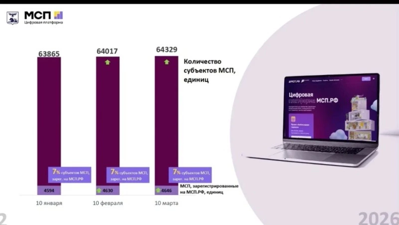 По состоянию на начало марта 2026 года количество субъектов малого и среднего предпринимательства в регионе достигло 64329. Число предпринимателей, зарегистрированных на цифровой платформе МСП.РФ, выросло до 4646. Таким образом, доля бизнеса, активно использующего государственные цифровые сервисы, сегодня составляет 7% от общего числа субъектов МСП области.