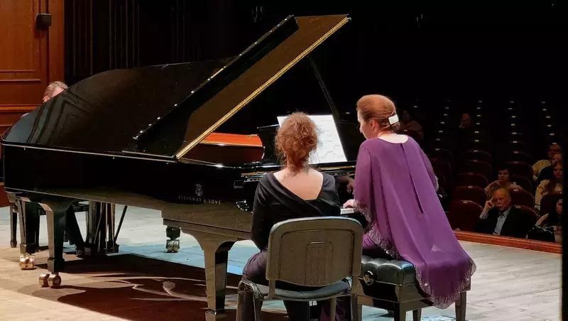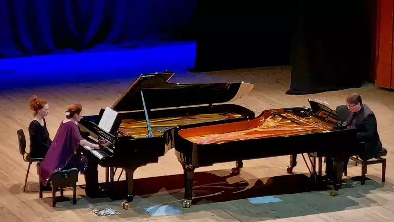 В Большом зале Белгородской филармонии состоялся вечер фортепианной музыки с участием известных петербургских пианистов. Дуэт представил слушателям насыщенную программу, в которую вошли произведения Шостаковича, Моцарта, Равеля и Мориса.