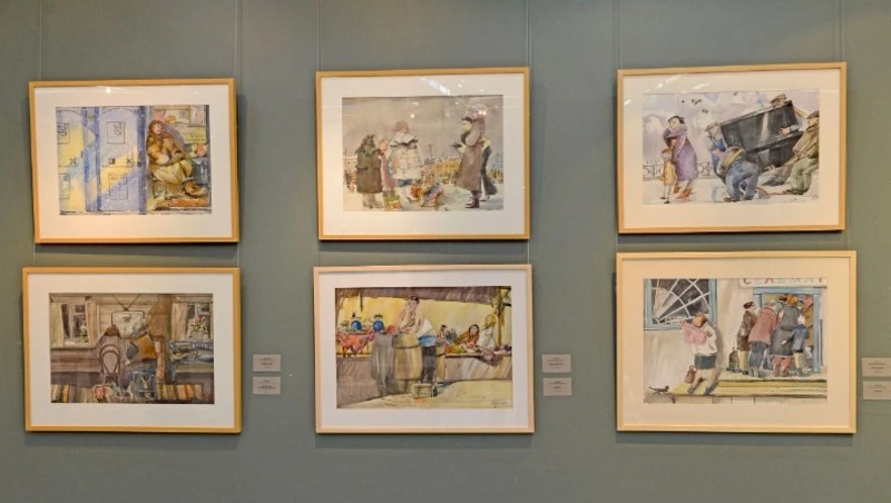 Экспозиция разделена на две части. Валерий Архипов представил серию акварельных зарисовок и монохромную графику, фиксирующую мгновения городской жизни. Наталия Бодрикова дополнила пространство керамическими скульптурами, исследующими образы женщин через детали и символы.