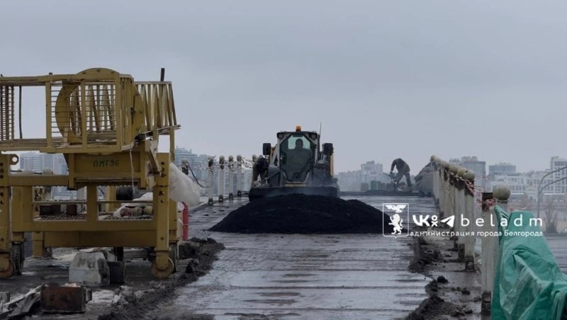 Специалисты начали укладывать асфальтовое покрытие на пешеходном мосту со смайлами в Белгороде. На данный момент завершено уже около 50 % этой работы.