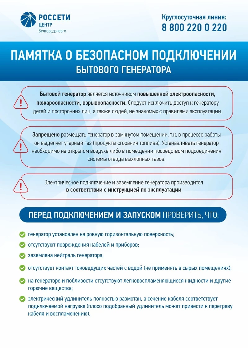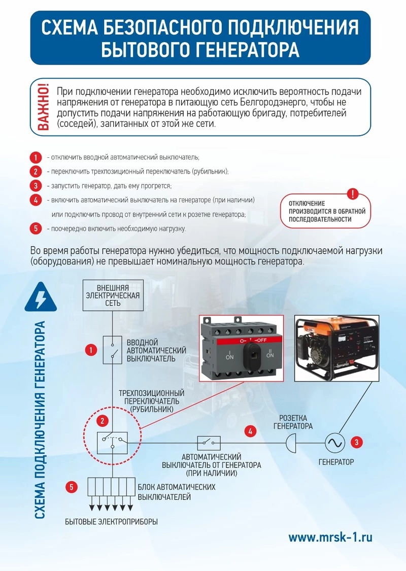 В связи с этим «Белгородэнерго» рекомендует изучить безопасную схему подключения генератора.