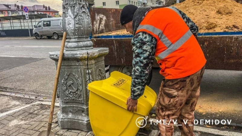 Для борьбы с гололёдом заготовлен полный объём противогололёдных материалов. Чтобы оперативно реагировать на ухудшение погодных условий, по всему городу установили 178 резервуаров с песко-соляной смесью.