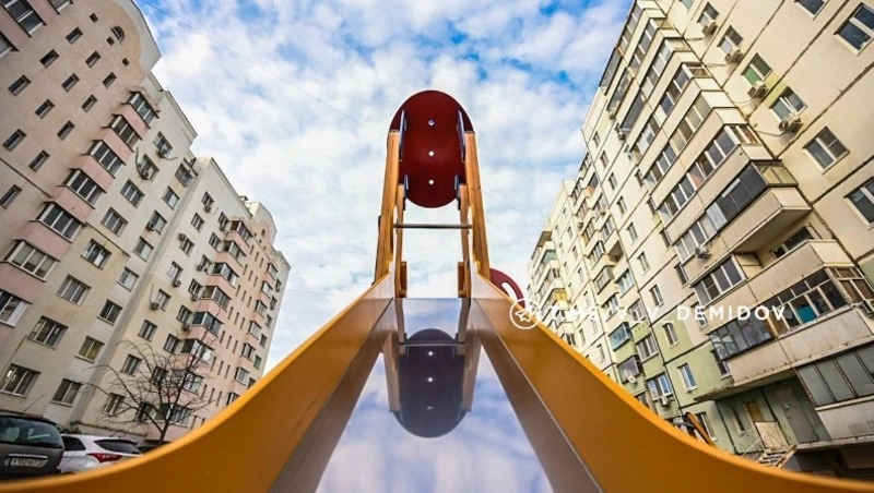 Теперь двор украшают два новых игровых комплекса, двойная качель, а также скамьи и урны. Всё оборудование выполнено из натуральных материалов.