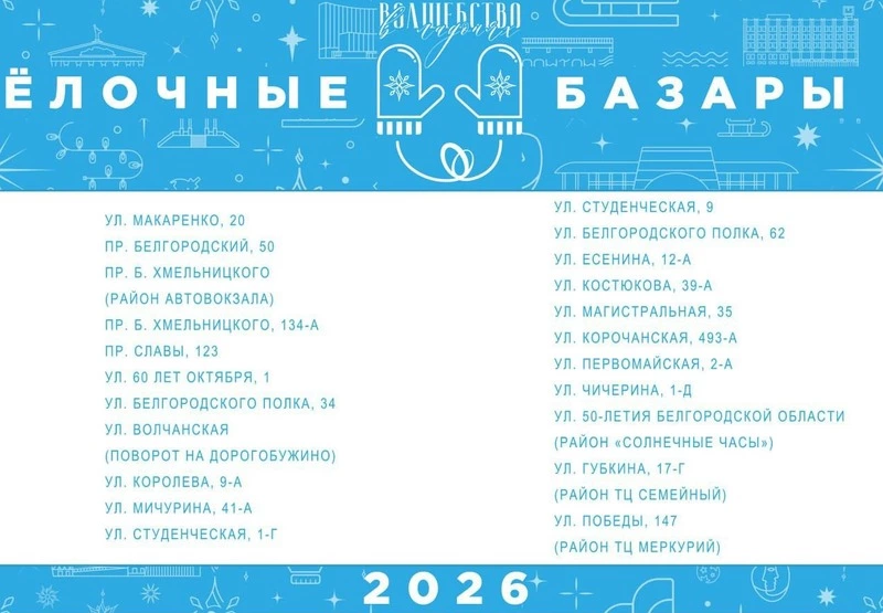 «Планируем, что работать ёлочные базары будут с 9:00 до 21:00 ежедневно. В этом году с учётом спроса откроются 22 точки (на 5 больше, чем в прошлом году)», — рассказал градоначальник.