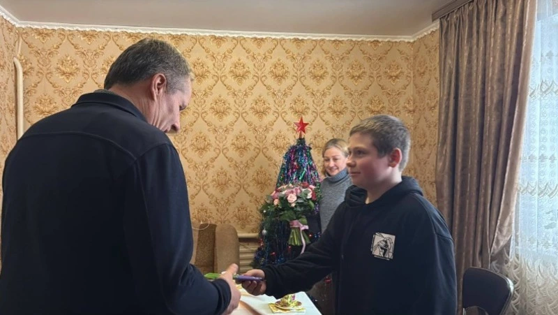 Вячеслав Гладков посетил село Головино Белгородского округа, чтобы лично поздравить с праздниками семью Ивана Еремия. Поводом для визита стало обращение матери юноши в социальной сети «ВКонтакте», где она попросила пожать руку своему сыну. Глава региона откликнулся на эту просьбу.