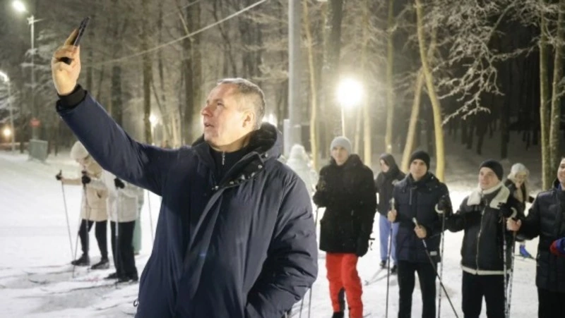 Губернатор рассказал, что молодые дублёры начали свой рабочий день с командного выхода на лыжню на велолыжероллерной трассе «Олимпия» в 6:00 утра.