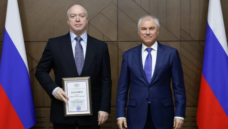 Депутат Государственной Думы Андрей Скоч удостоен Благодарности Председателя Госдумы РФ за заслуги в развитии парламентаризма и законотворческую деятельность. Награду парламентарию вручил спикер Вячеслав Володин в ходе заседания нижней палаты.