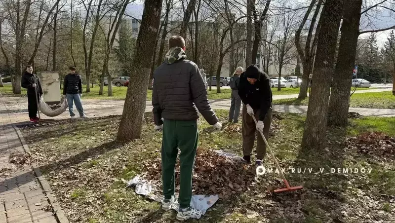 Активисты сгребали прошлогоднюю листву, очищали тротуары от смета и белили деревья.