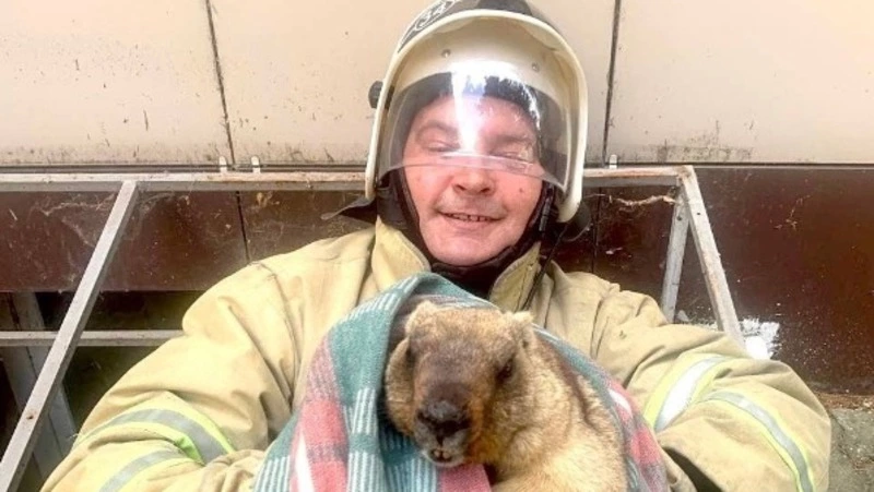 Пожарные спасли сурка-байбака в Белгородской области. Инцидент произошёл в посëлке Ровеньки.